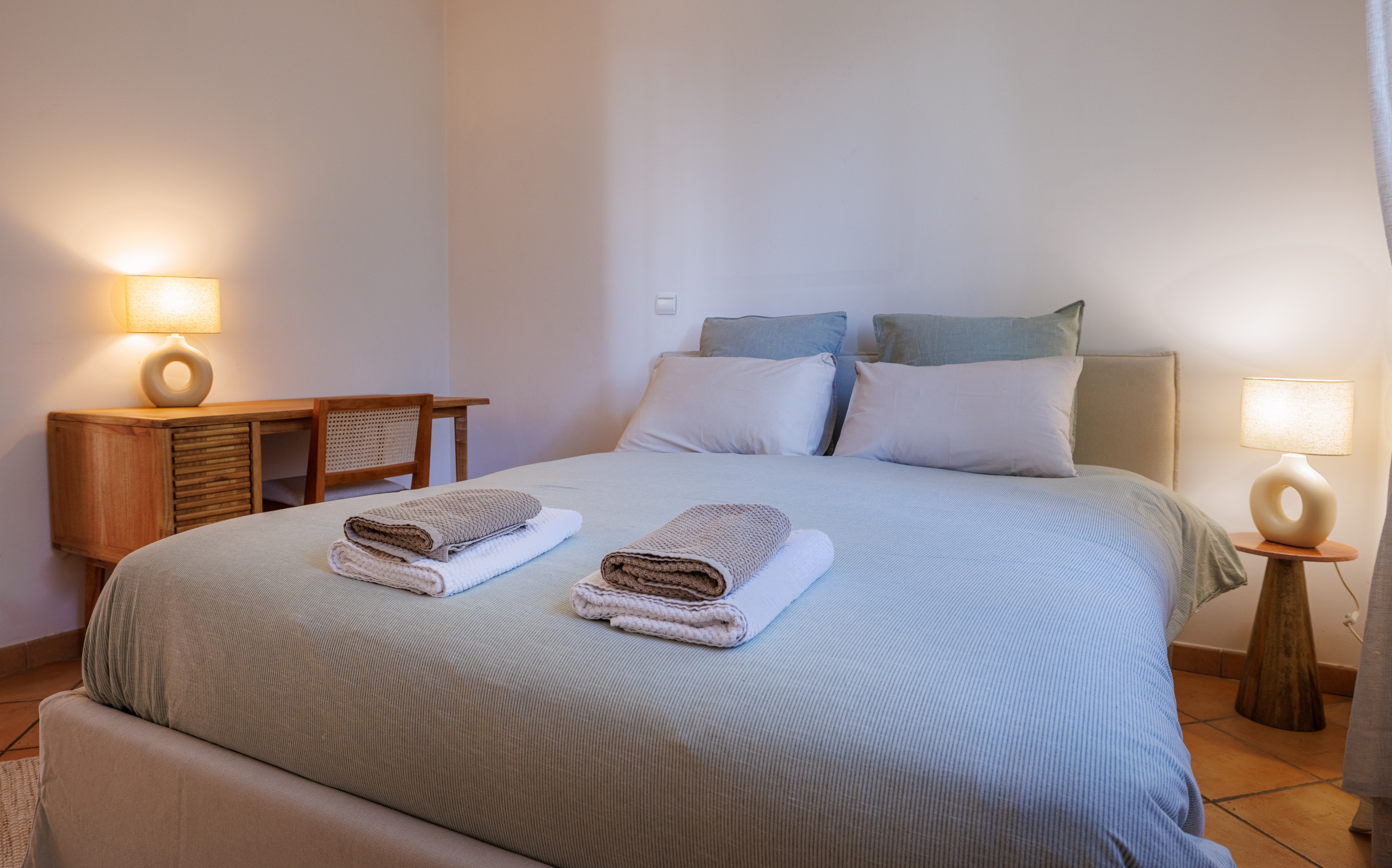 With 140 sqm of space, the villa comfortably sleeps up to 6 guests. The three bedrooms offer a practical and flexible setup for families or friends: two queen beds and two single beds. You’ll also enjoy two bathrooms — one with a shower and one with a bathtub — plus a separate toilet, making everyday life easy even with a full house.