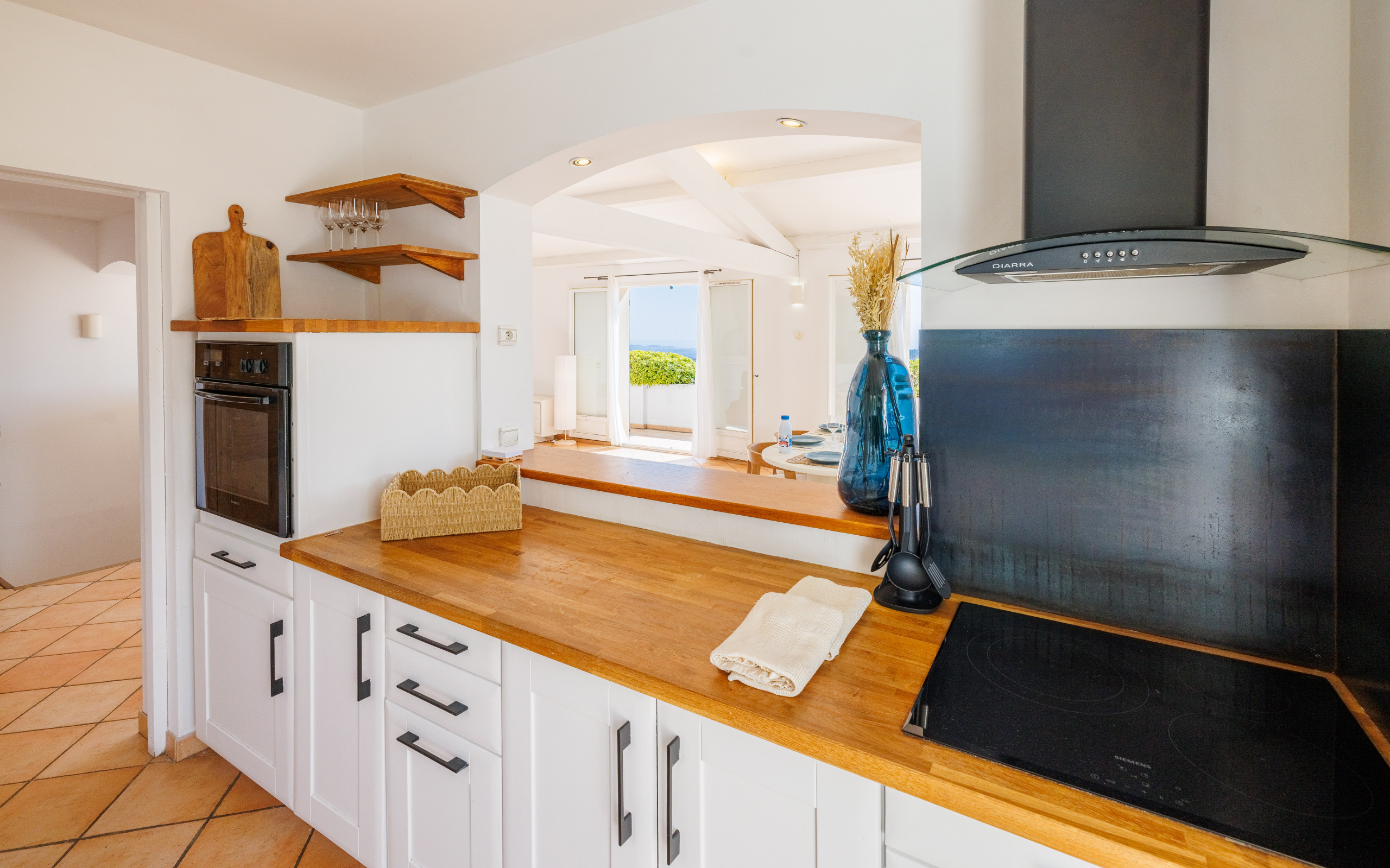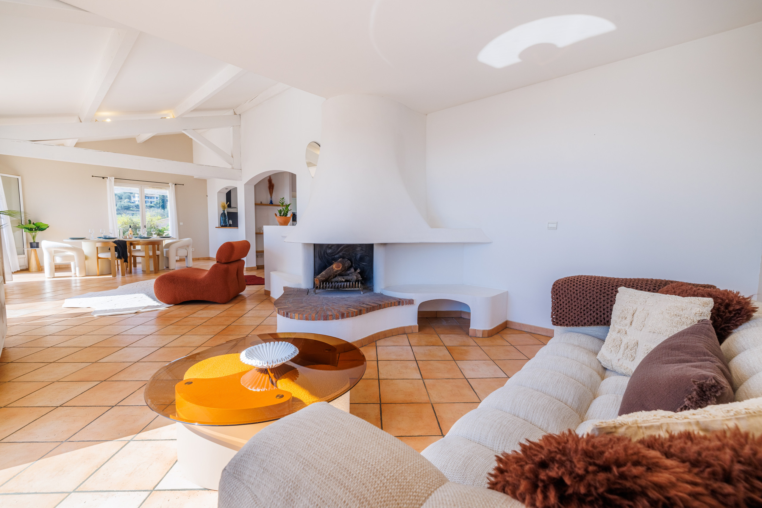 Inside, the open-plan kitchen is fully equipped (induction hob, oven, microwave, dishwasher, fridge, freezer, coffee machine…), plus Wi-Fi and a fireplace for cosy off-season evenings.