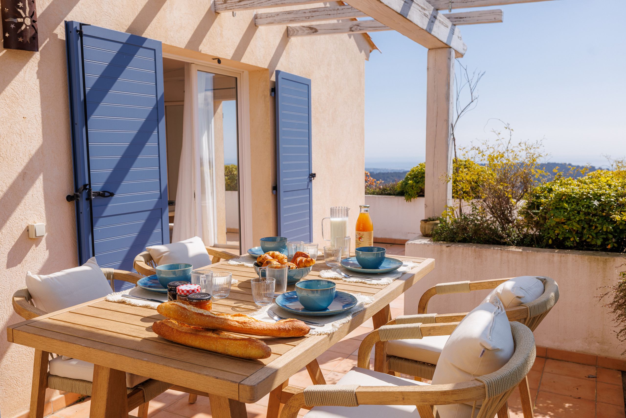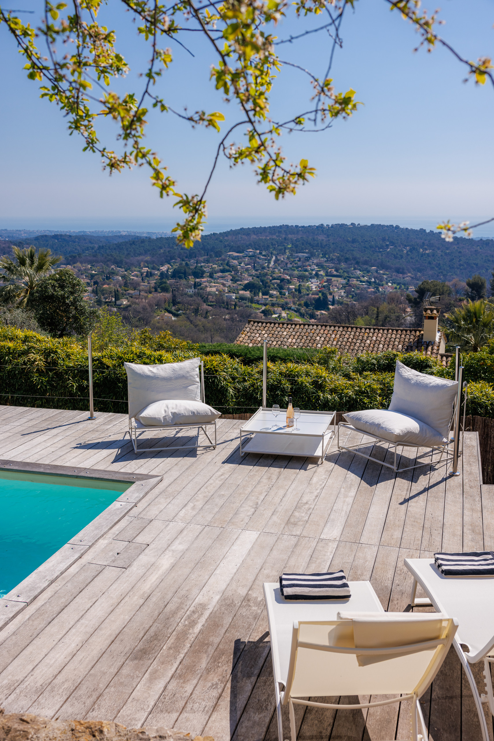 Tucked away in Tourrettes-sur-Loup, La Cabanette captures an effortless South of France feel: blue shutters, beautiful natural light, terraces opening onto greenery — and a warm, relaxed atmosphere made for sharing time together.