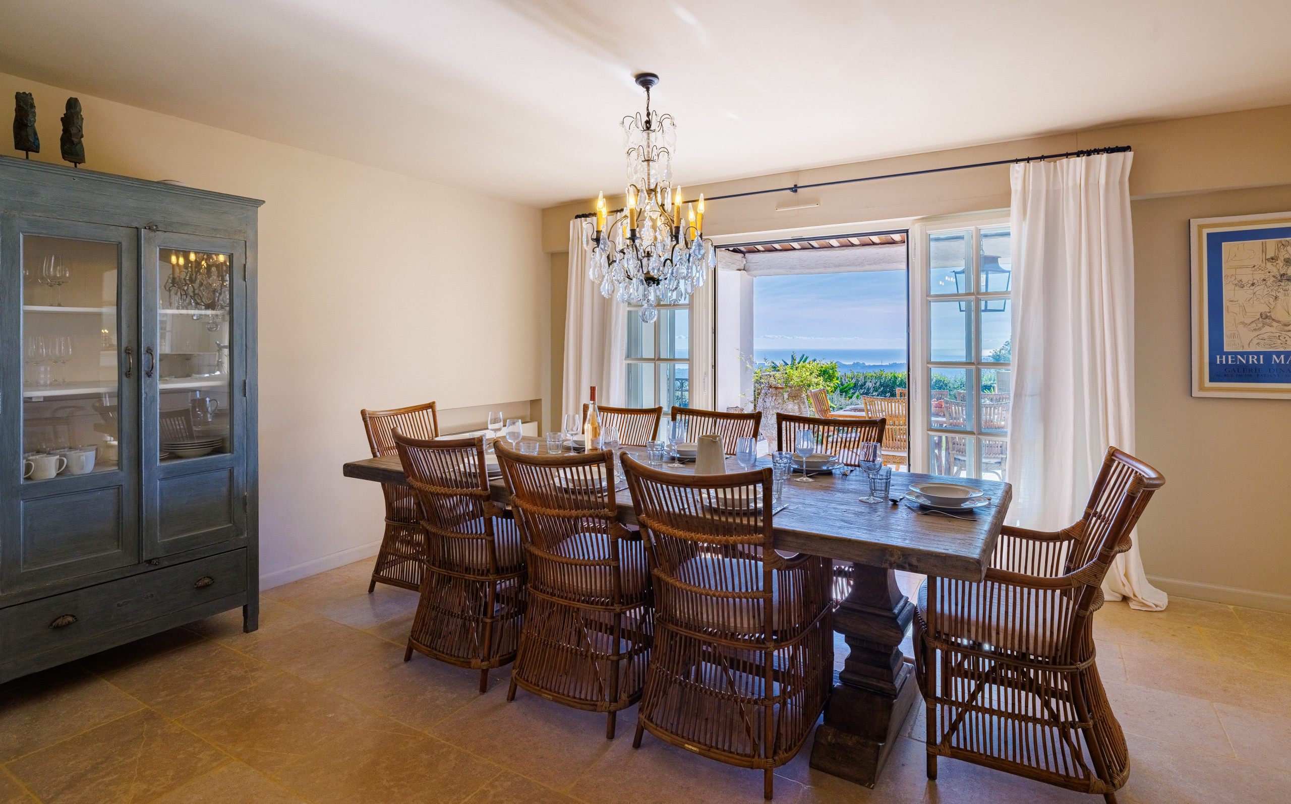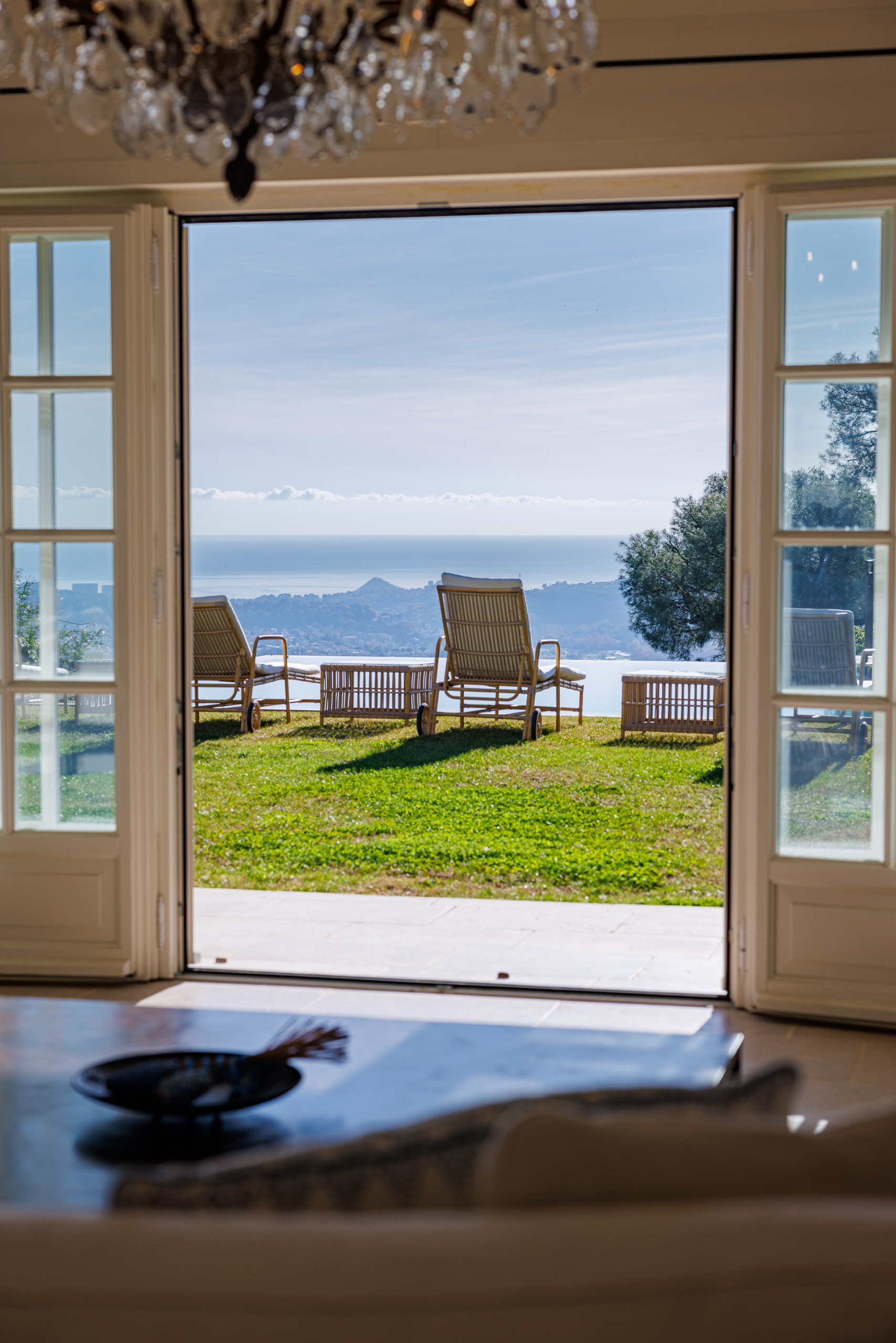 From the terrace, the view stretches endlessly — from Cap d’Antibes to Cap Ferrat — with the medieval village of Saint-Paul shimmering in the foreground. Every sunrise feels like a postcard.