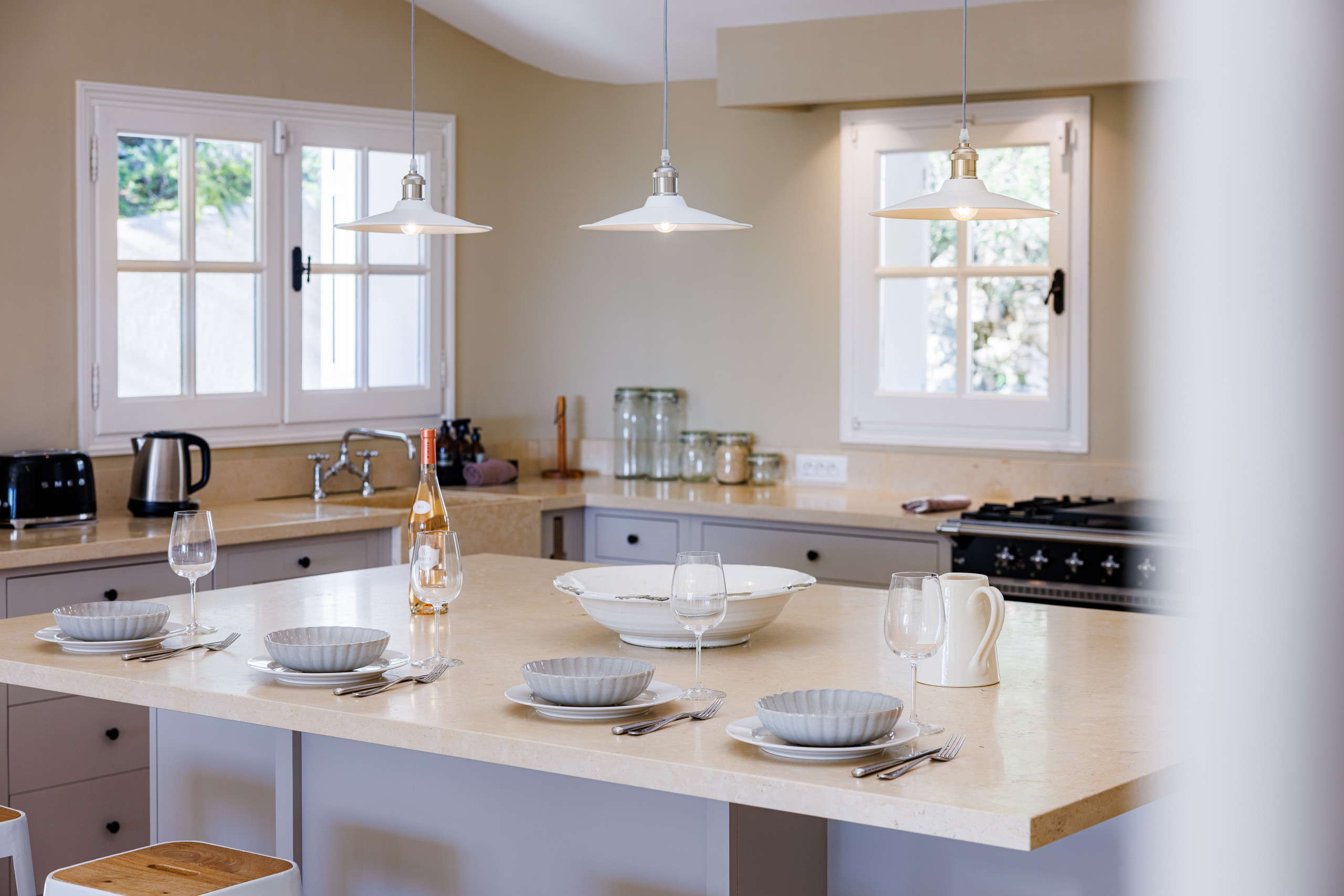 Behind its pale-stone façade, the villa opens onto 250 m² of light and refinement.