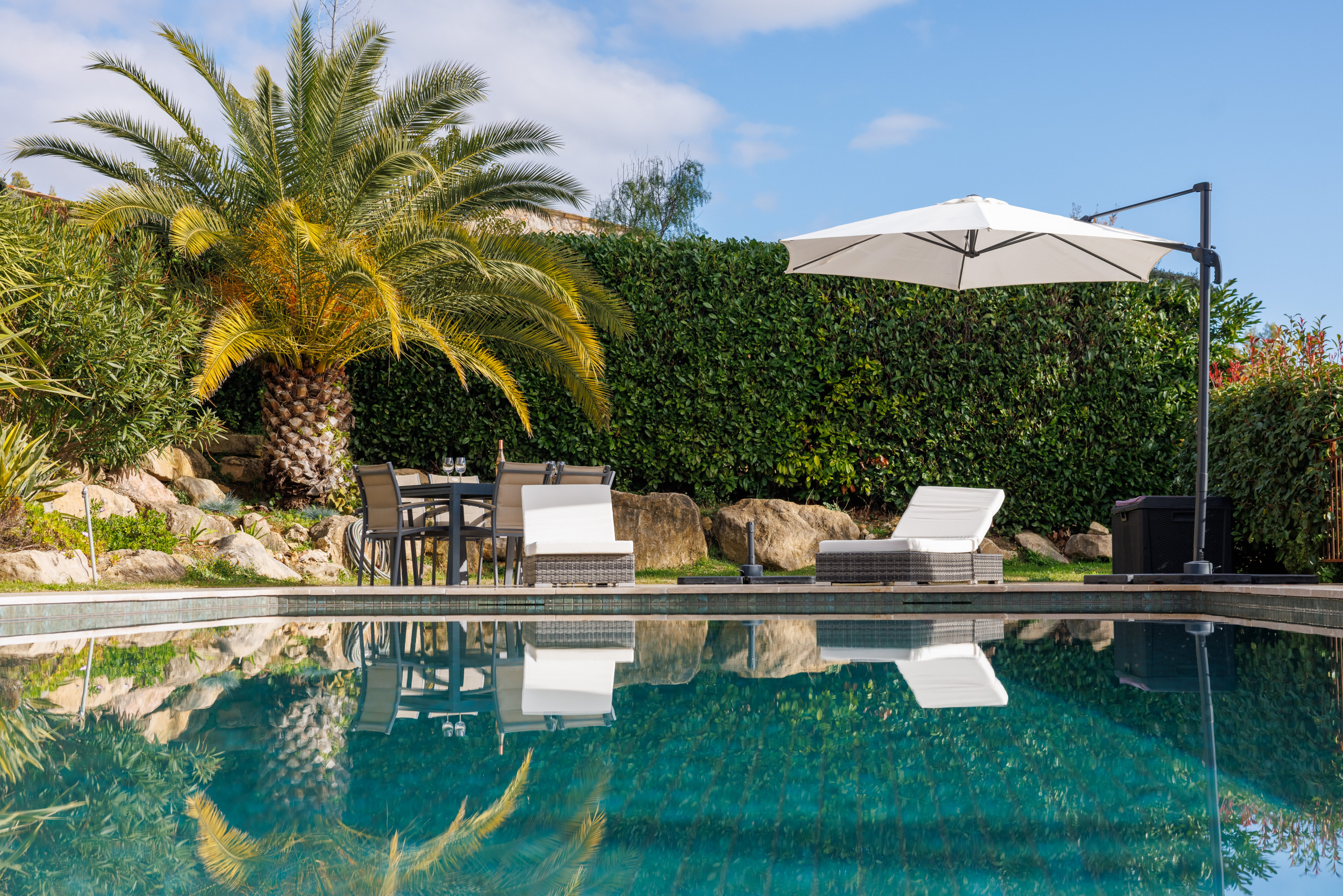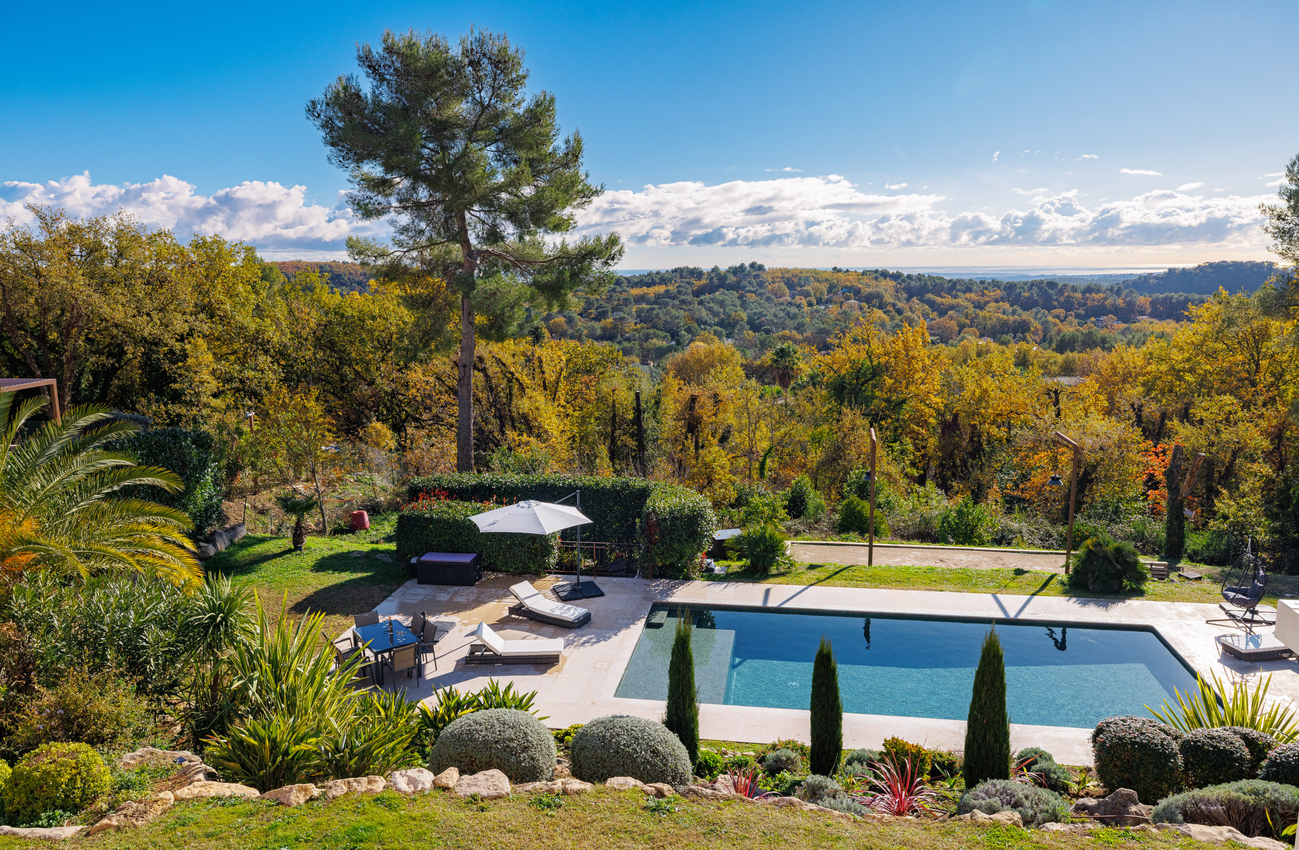 With its calm atmosphere, far-reaching sea view and generous outdoor spaces, Villa du Roucasset is a place made for summer — a true Côte d’Azur holiday home, inviting, sun-filled and wonderfully relaxing.
