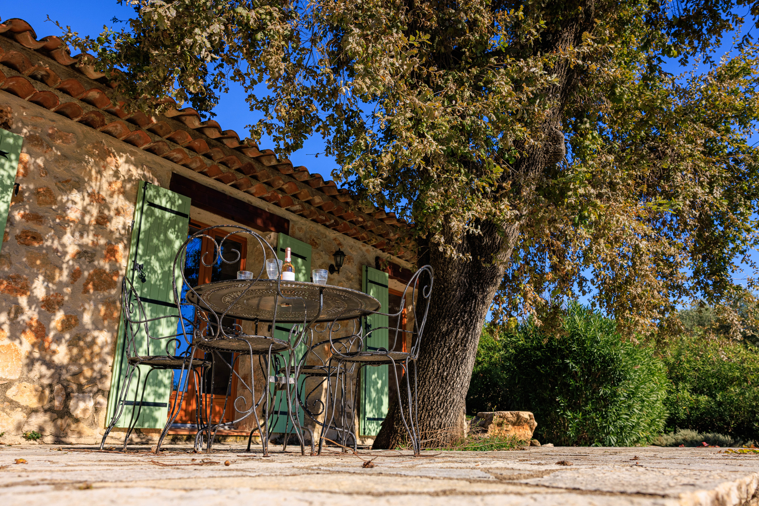 In spring and summer, long lunches unfold under the shade of the century-old oak tree, with the hum of bees and a chilled glass of rosé close at hand.