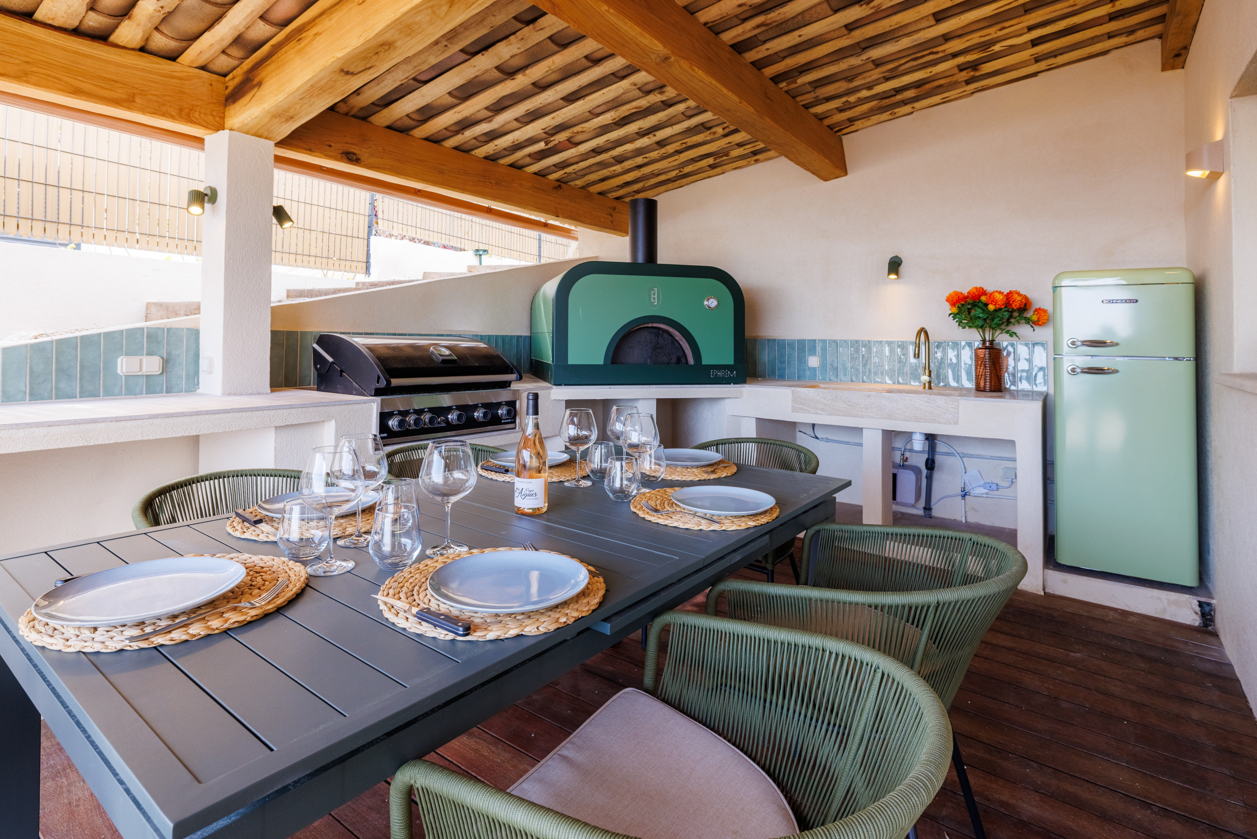 Inside, the villa combines comfort and elegance. All bedrooms are air-conditioned, ensuring a pleasant stay even in the height of summer. The modern open-plan kitchen is designed as a true living space, ideal for slow breakfasts in the morning light, preparing meals together, or gathering after a day spent exploring the region. Four comfortable bedrooms and three well-designed bathrooms make the house perfectly suited to families and groups of friends.