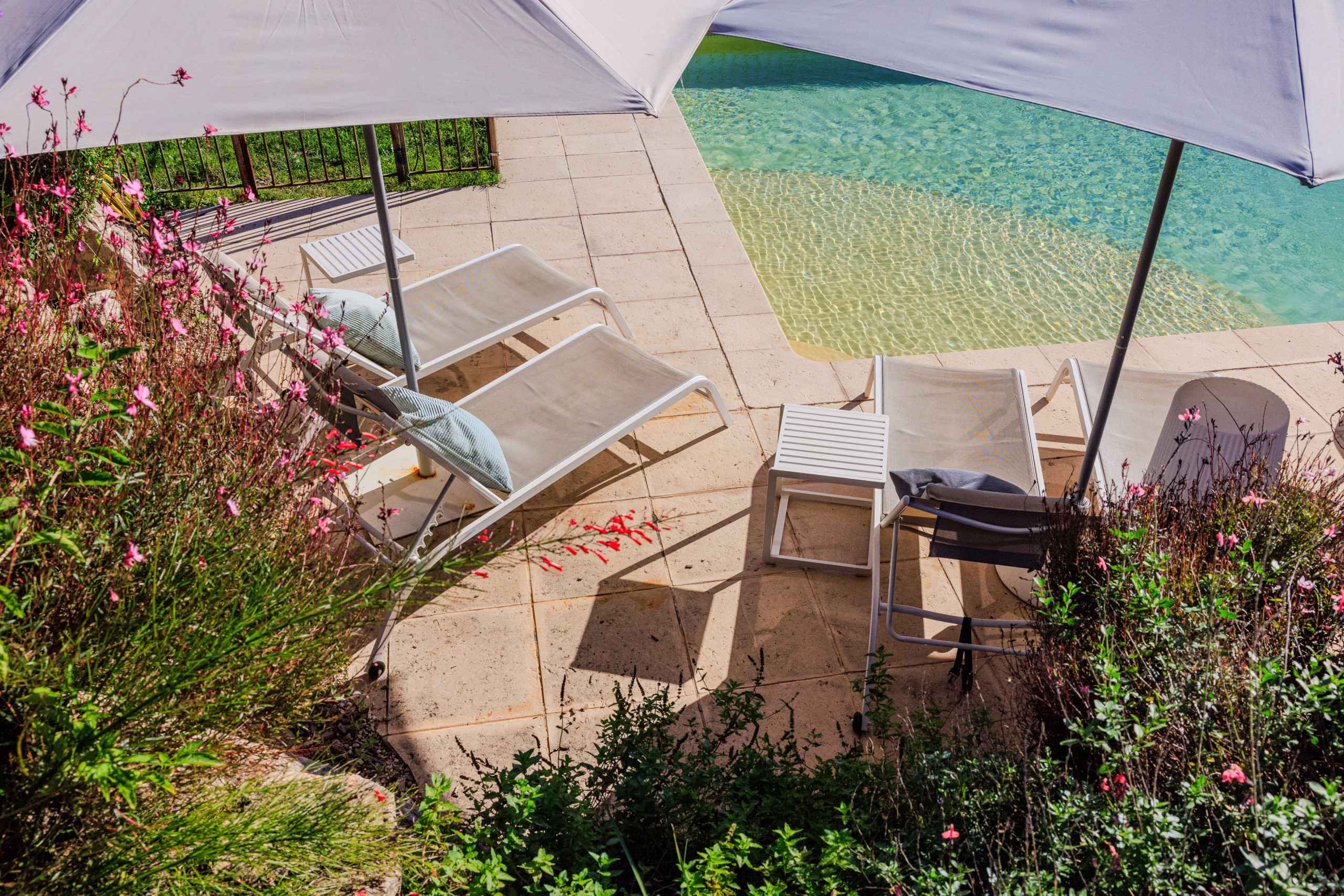a wide shaded terrace for long lunches and relaxed conversation, a heated 11×5 m pool that mirrors the sky, a sauna tucked away for cooler days, and a vast natural ground where wild deer sometimes appear at dawn.