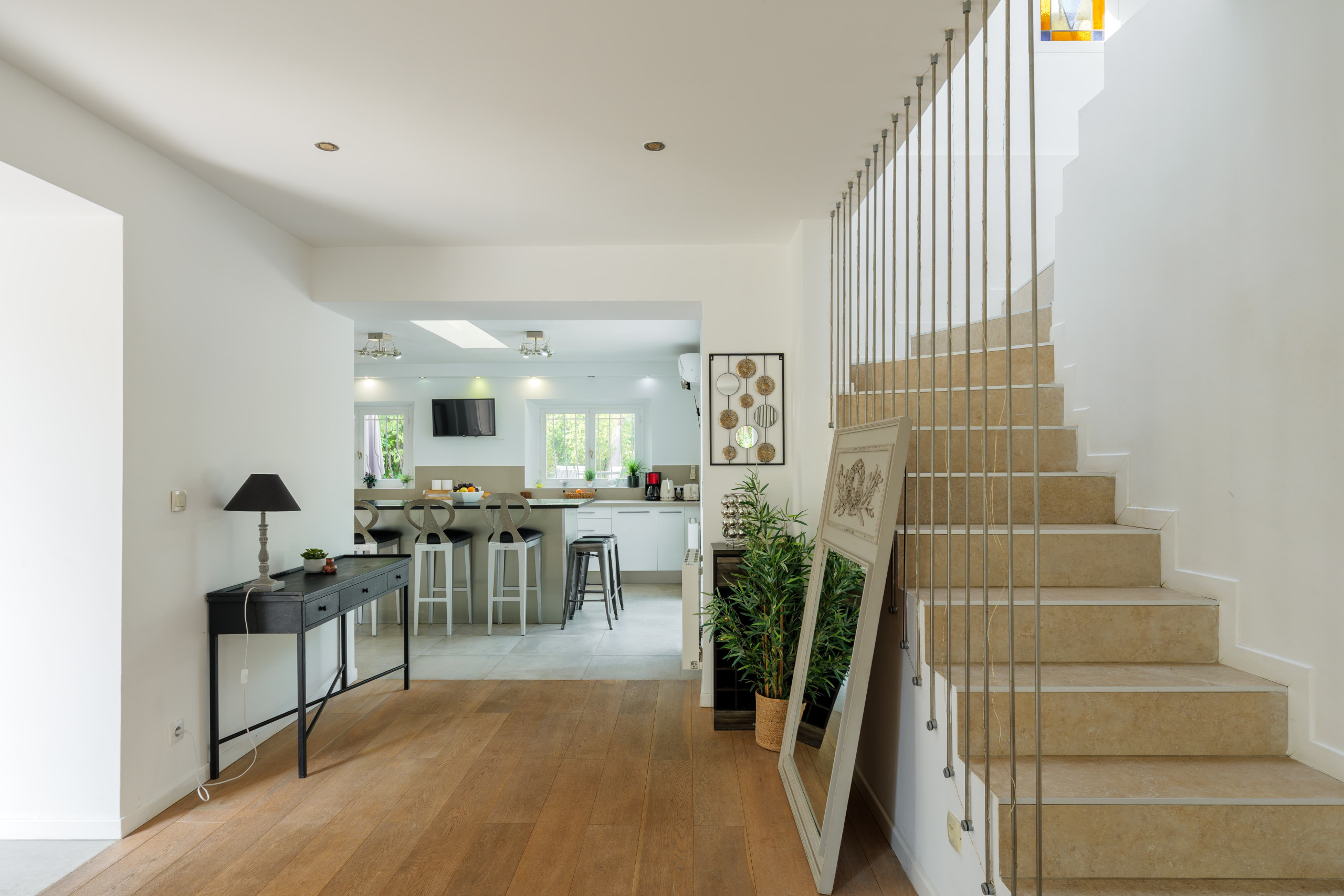 À l'intérieur, la villa est tout en convivialité. Le salon lumineux s'ouvre sur une grande véranda vitrée donnant sur la piscine, créant un beau flux entre l'intérieur et l'extérieur. La cuisine entièrement équipée et ouverte facilite la préparation des repas tout en restant connecté à la vie de la maison.