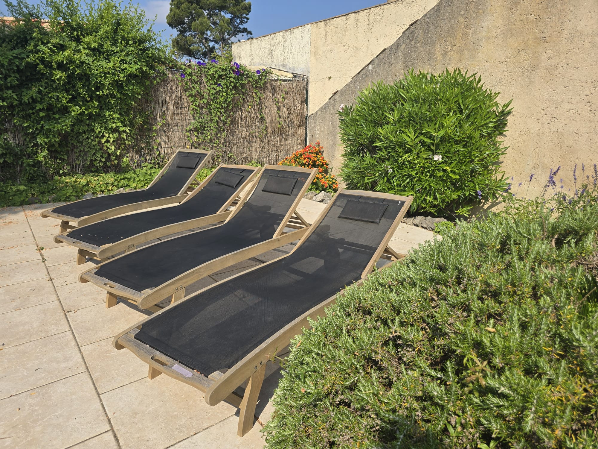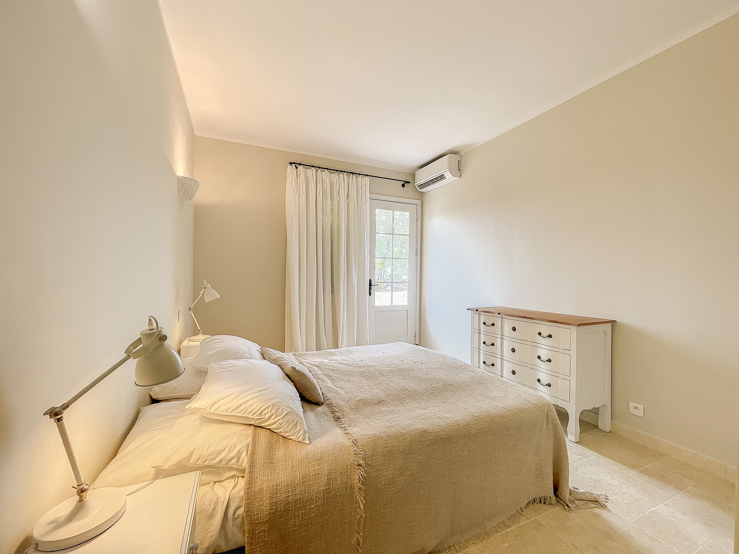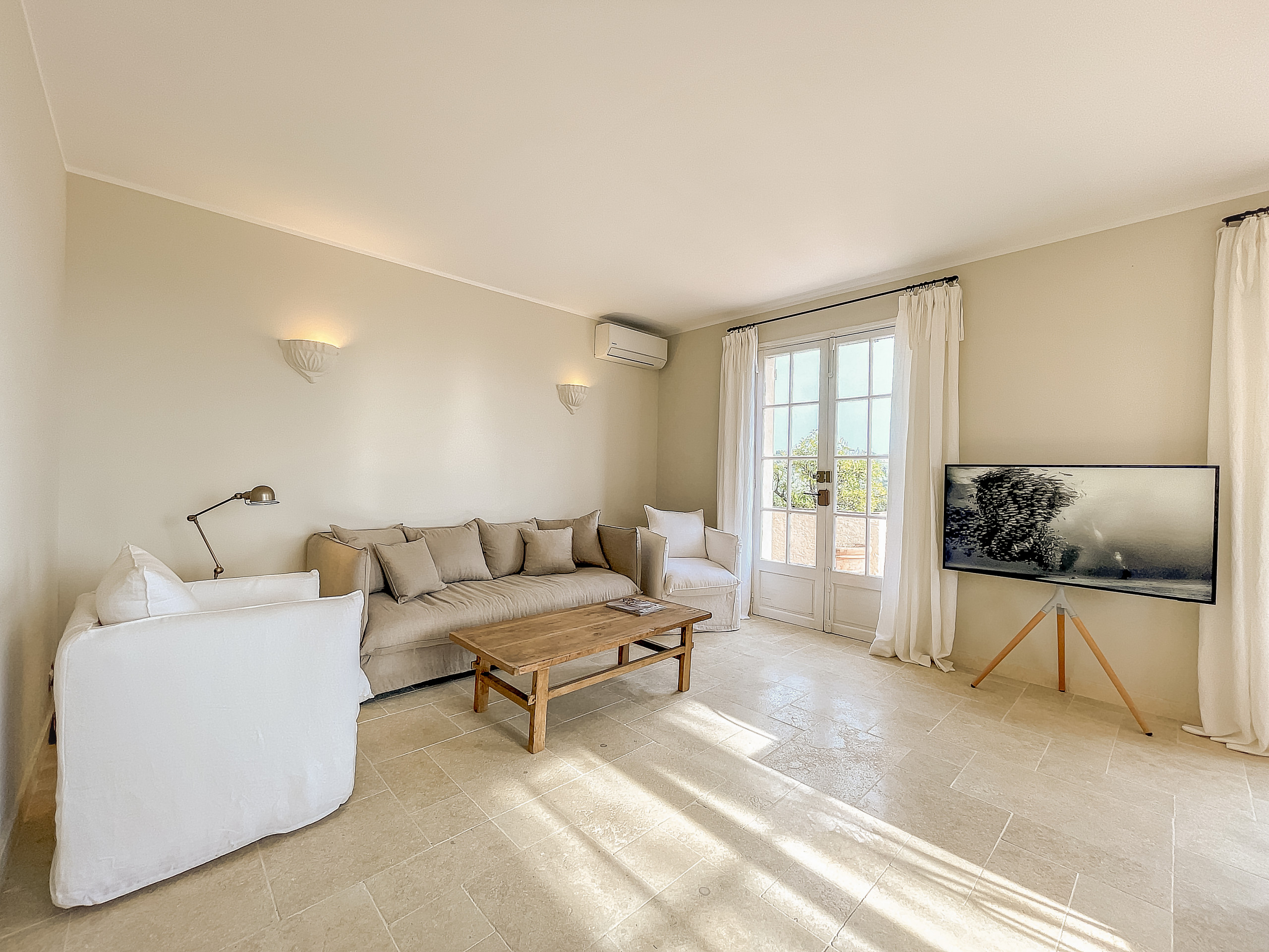 À l’extérieur, un jardin clôturé, des coins détente et surtout un accès exclusif à la piscine du domaine avec vue mer — un privilège rare à Saint-Paul-de-Vence.