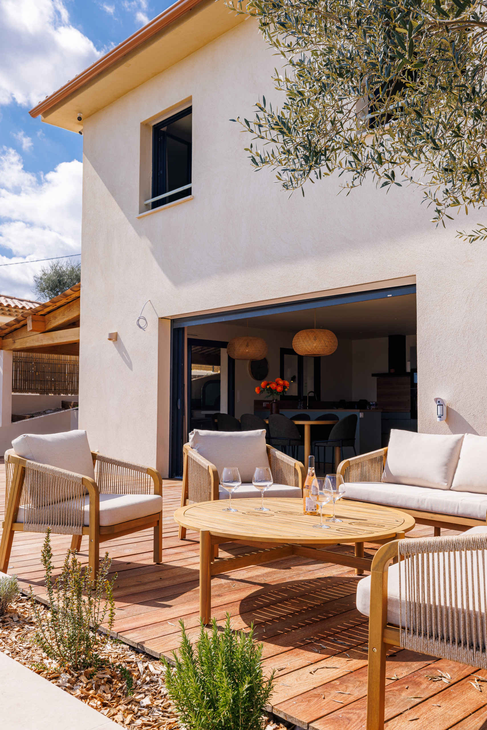 En été, Villa Le Soleil Bleu est un lieu de vie extérieure, de soleil et de journées au bord de la piscine.